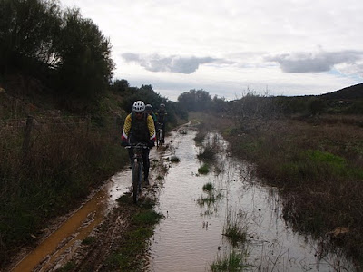 Depois de um périplo por entre ruas e atalhos da cidade de Abufeira, lá passamos pelo primeiro single track do dia; nesta altura como tinhamos saido com cerca de 15 minutos atrasados a minha preocupação era recuperá-los para que o VCF e a Zazas não congelassem no 2º ponto de encontro.
